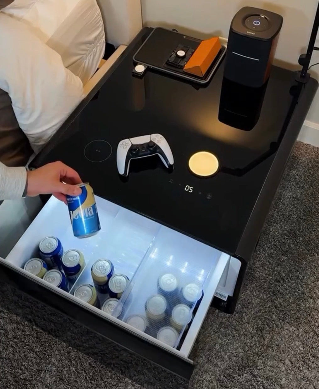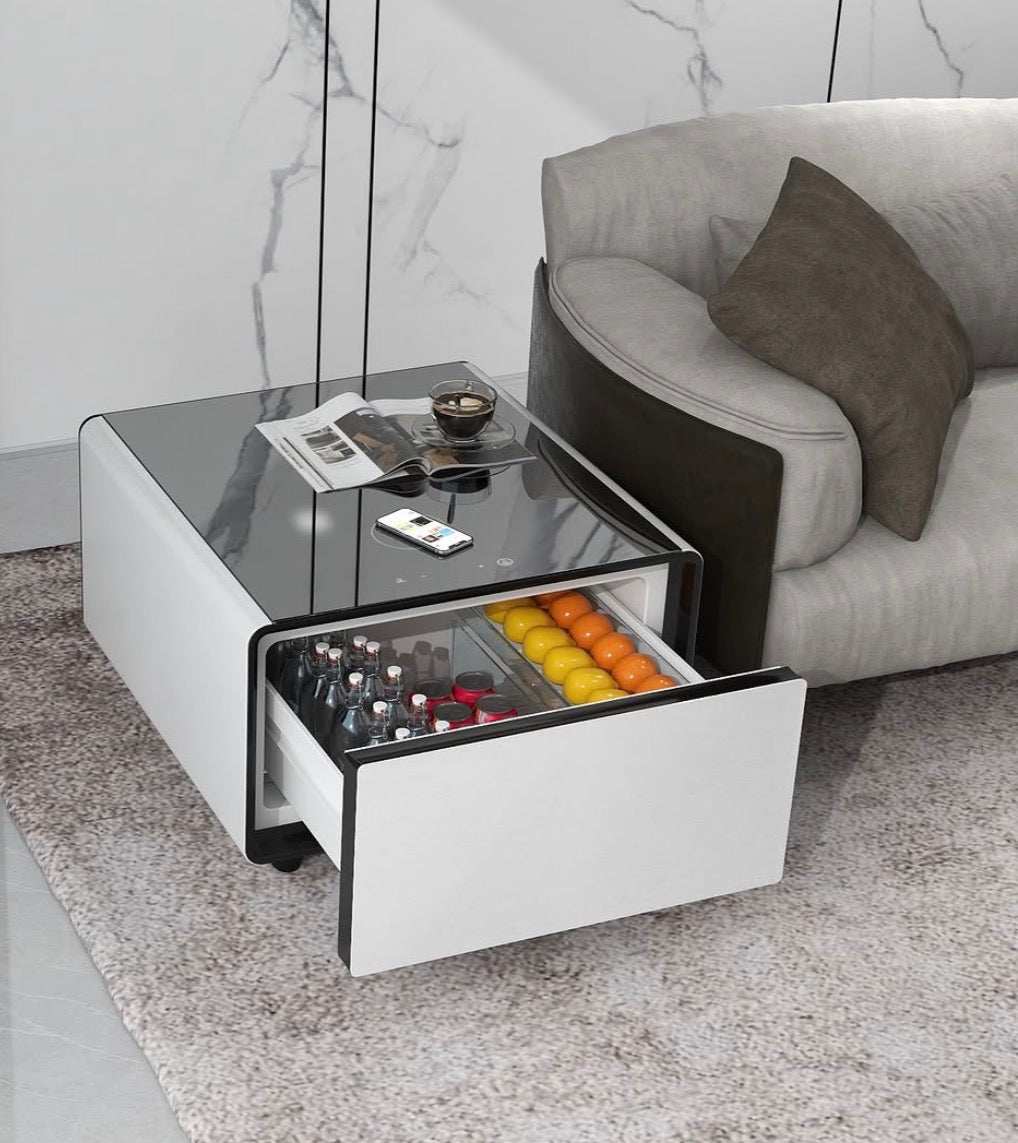 A modern coffee table that combines design and smart features.